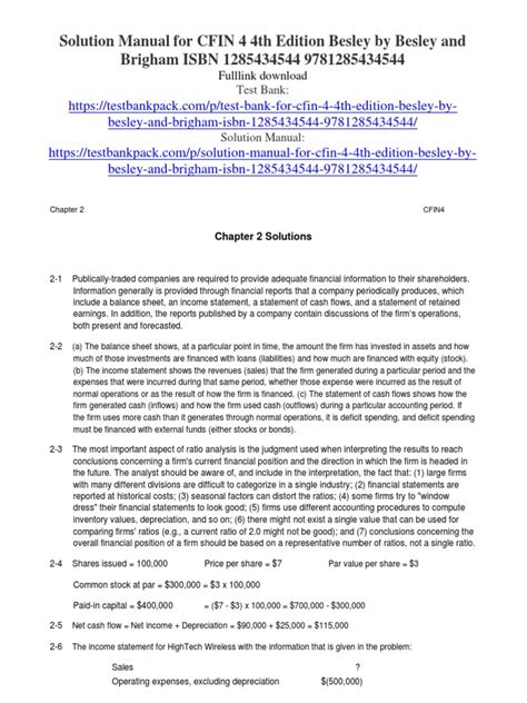 Download CFIN BESLEY BRIGHAM SOLUTIONS Reader